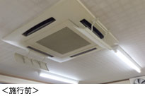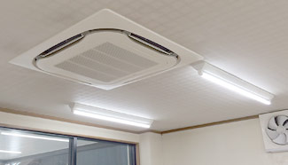 壁掛形のエアコンを天井カセット形に変更しました。これで部屋全体にバランス良く冷暖房の風が届きそうです。